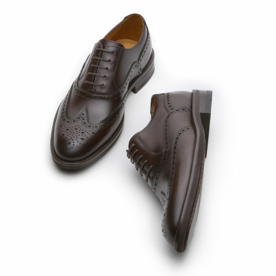 Clássico que se mantém sempre atual, o Oxford ganha versão brogue – caracterizada pelos recortes (wingtip) e furinhos no cabedal – e, no marrom café, torna-se ótimo substituto ao preto em produções mais formais. Combina muito bem com cinza e azul-marinho. Use com seu terno para trabalhar ou em cerimônias diurnas e noturnas, como casamentos.